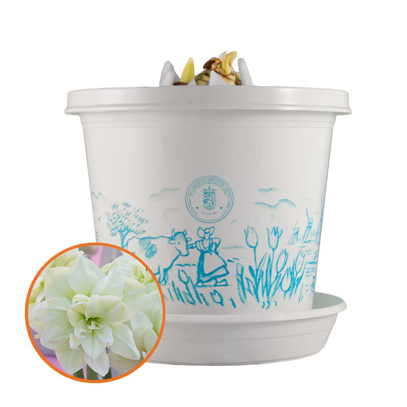 The Amaryllis is a true tropical sun worshipper. Give this beauty some sun, light and a little extra attention, and you will enjoy its white appearance for a long time to come. This Marylin® amaryllis is already potted and comes in attractive gift packaging. So you can treat yourself or others without getting your hands dirty.