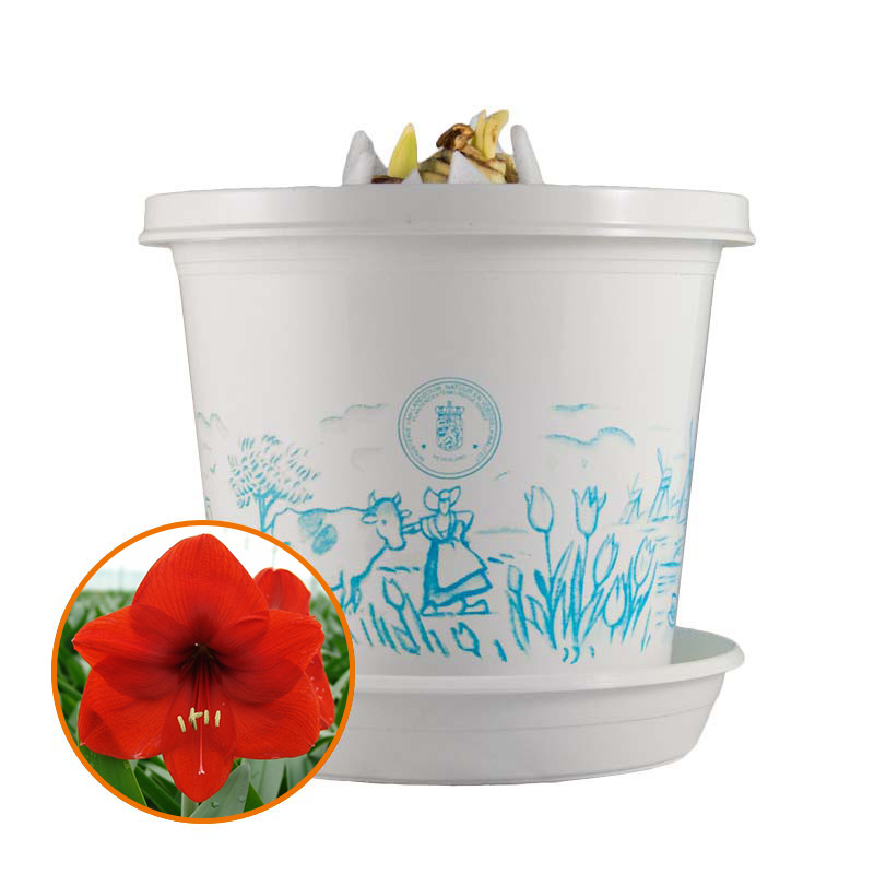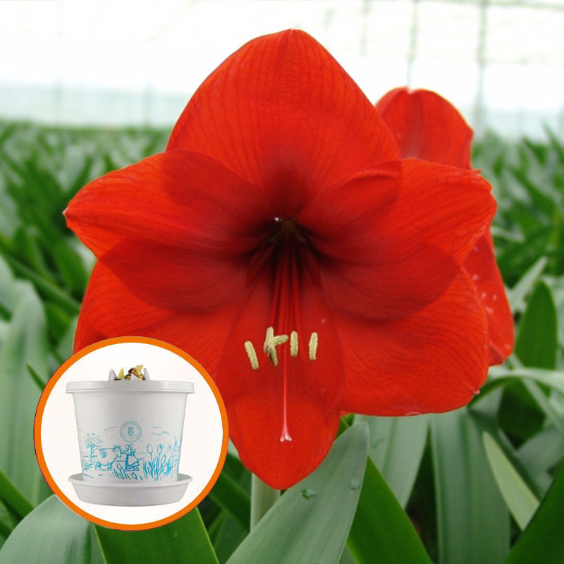 Amaryllis Red Lion in pot and in gift box