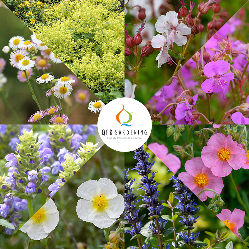 A bed with ground covers is ideal if you don't have much time or desire to weed your new bed. Ground cover plants spread quickly over a wide area like a carpet and are characterised by a low growth height. Ground cover plants spread very much with their runners and ensure that the weeds do not have much opportunity to spread. This perennial bed mix consists of the following ground covers: