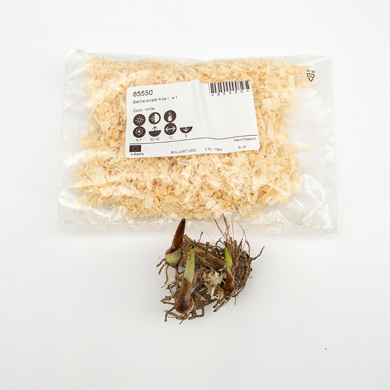 What a beauty this Bletilla Alba, delivered on a rhizome, is with its pearly white flowers and its beautiful calyx with a hint of lilac. This earth orchid is surprisingly beautiful and likes a moist to swampy place in your garden. Its leaves are elongated and fresh green, with fine white edges. Her flower stem is slender but sturdy and she will grow to a height of approximately 30 to 40 cm.