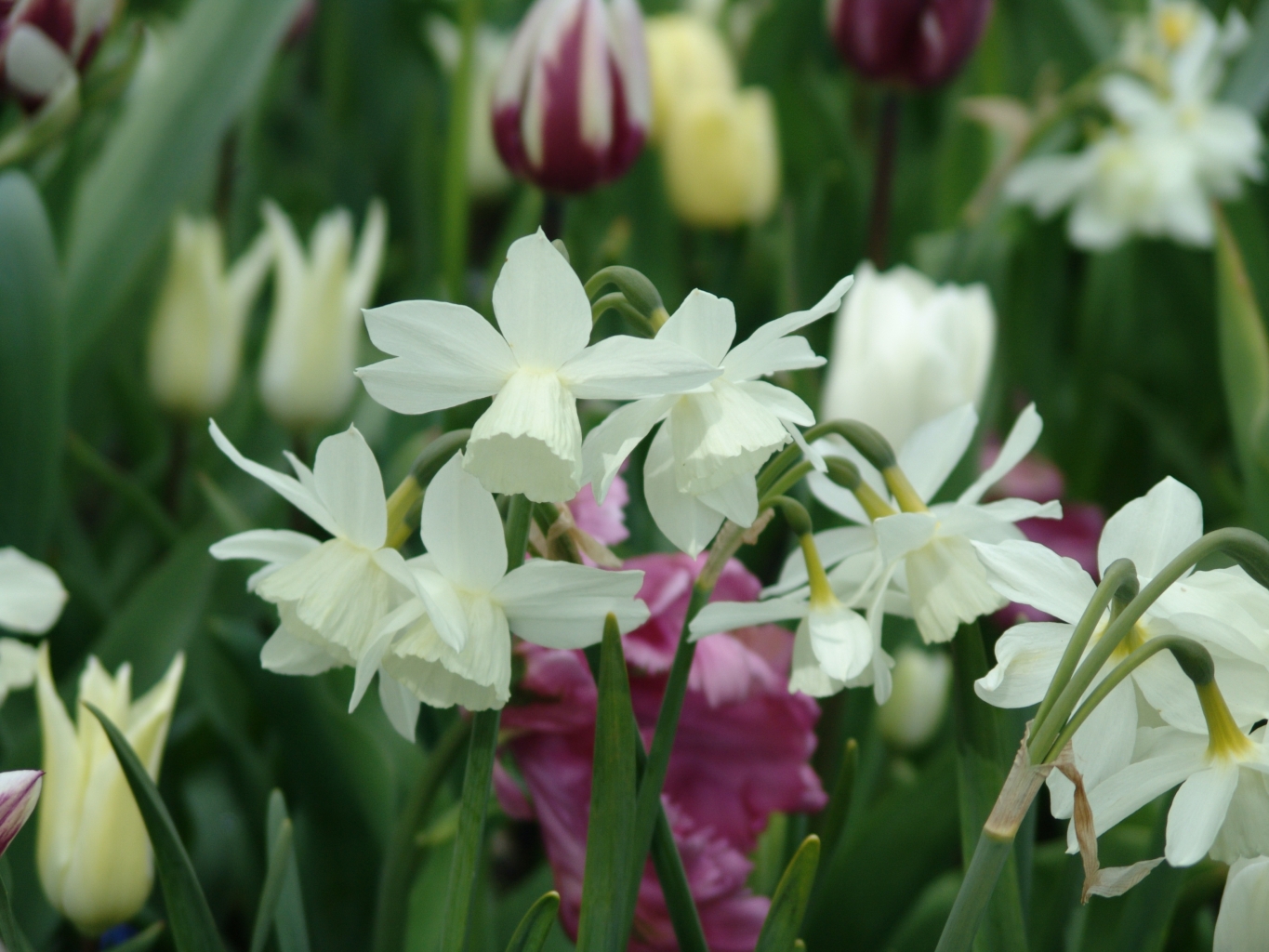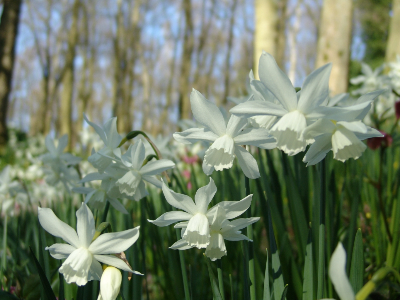 This gorgeous orchid-looking narcissus, with a nodding head, features pure white petals and corona. Thalia has also received a Wister Award in the USA! This incredibly fragrant and sturdy daffodil was first discovered in 1916 and stayed popular to this day! The bulbs multiple very quickly and the flowers last long. Each stem produces up to 4 flowers, making a lovely bouquet of its own, and a good length (30-35 cm) makes it a wonderful cut flower. Because of the snow-white colour, it is very easy to combine this variety with other mid-spring bloomers.