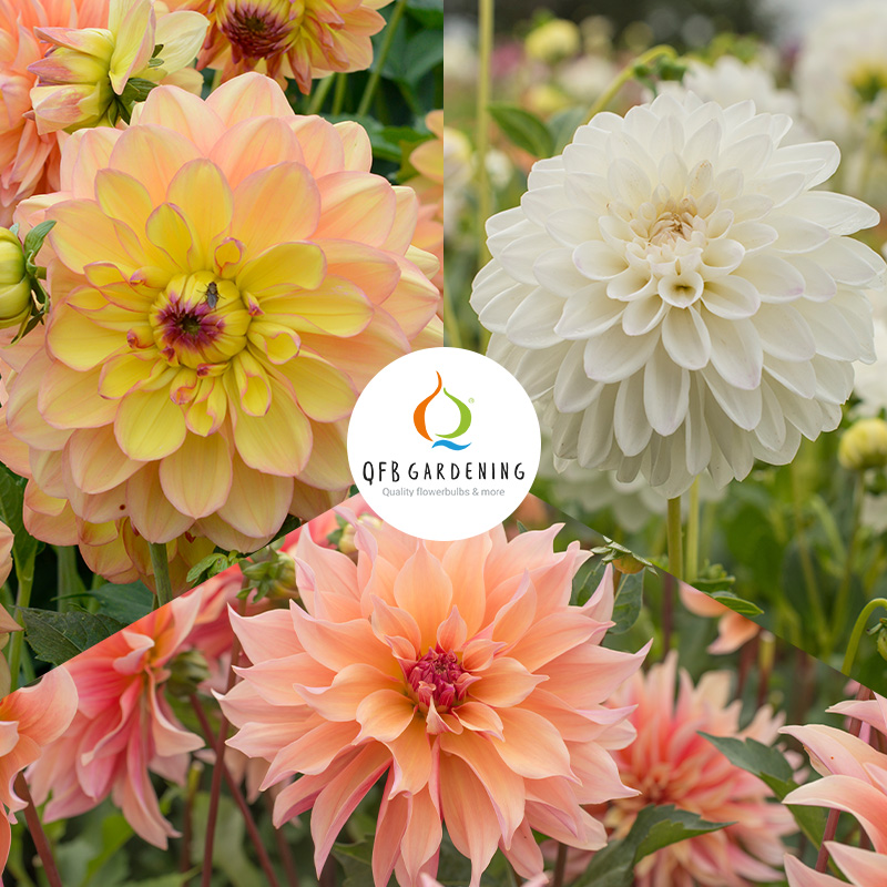 The dahlia mix "Romantic Summer" provides a particularly romantic eye-catcher in the garden due to its colour concept. The dahlia mix is particularly captivating because of its diverse flower shapes and its many flowers in pastel colours. This lovely dahlia mix prefers a sunny or semi-shady location and will captivate you with its delicate flowers from June until the first frost.