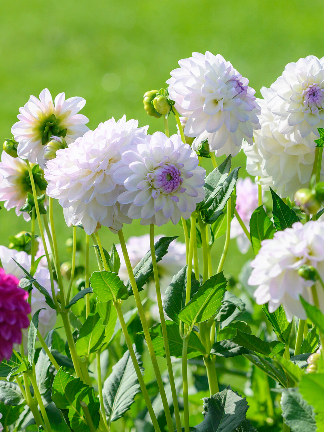 Ball dahlias are very popular because of their fantastic, perfectly rounded flowers on strong stems. Especially the dahlia Eveline enjoys great popularity every year because of its beautiful white ball flower with a small delicate lilac heart inside the flower. The dahlia Eveline gives beautiful ball-shaped flowers every year if you have kept the dahlia tubers frost-free, cool and dry during the winter. Ball dahlias are reliable suppliers of symmetrical flowers in your garden. The dahlia tuber Eveline grows to about 100 cm high and flowers continuously from summer until the first frost. It gives so many flowers that you can easily place many of them as cut flowers in a vase in your home.