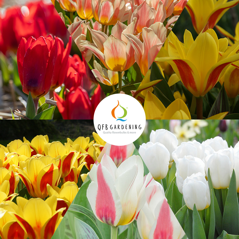 Our flower bulb mix of early blooming tulips is made for everyone who wants to have the first flowering tulips in the garden or in the pot. This tulip mix consists exclusively of early flowering tulips that flower as early as March and into April. Early tulips belong to the small early bloomers and only grow up to 30 cm high. Due to their small size, they are also suitable for planting in pots. So you can enjoy the first tulip blossom wherever you like and move the pot around in your outdoor area as required. The colouring of this early flowering tulip bulb mix goes from white to yellow and red tones for a colourful start to spring. For the longest possible tulip enjoyment, combine this pack with our late blooming tulip mix and enjoy the tulip glory until May.