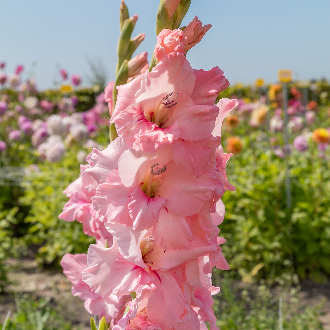 Bring dynamism and passion to your summer border with the Gladiolus “Adrenalin”. As the name suggests, this variety is a real eye-catcher that immediately attracts attention. With its powerful, upright flower stems and unique colour composition, it is the perfect choice for anyone who loves a garden with character. The “Adrenaline” stands out for its intense pink flowers with a subtle, lighter centre. This colour gives the flower a beautiful depth and a velvety appearance. Whether in a sleek modern garden or a casual cottage garden, these gladioli provide a vertical accent that will not go unnoticed.