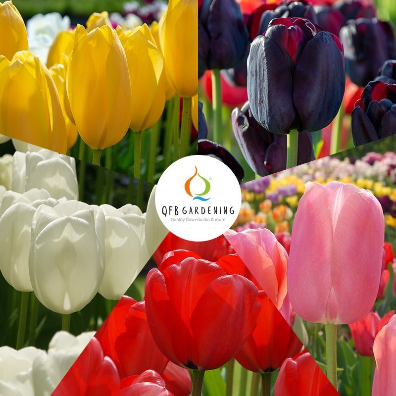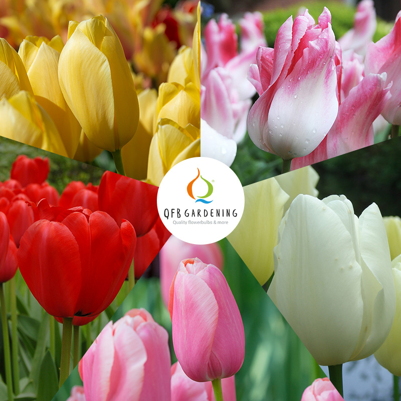 This tulip mix "Monet" is inspired by the colouring of the artwork of the French painter Claude Monet (1840 - 1926). Enjoy this colourful ensemble in your garden! This flower bulb mix consists of tulips of different varieties. You will find Darwin Hybrid, Triumph, or even simple late flowering tulips in this collection. Place this colourful tulip bulb mix in a spot in full sun or partial shade. The flowering time of the tulips will be between April and May and the flower colours are as mixed as the tulip types. The growth height is about 30 to 60 cm. For the best effect, we recommend planting about 70 tulip bulbs per m². Let yourself be surprised by these amazing spring bloomers and enjoy the sight of them next spring!