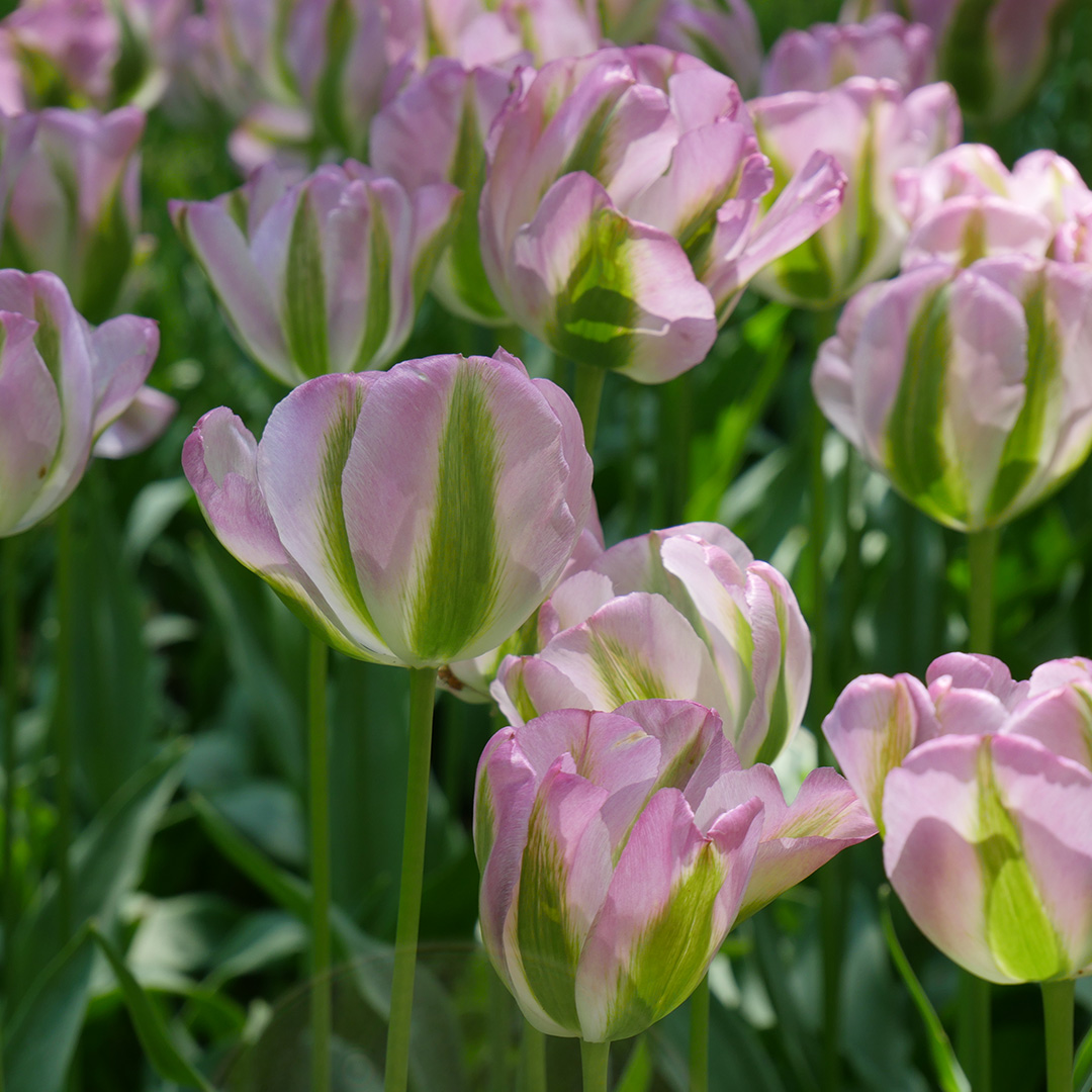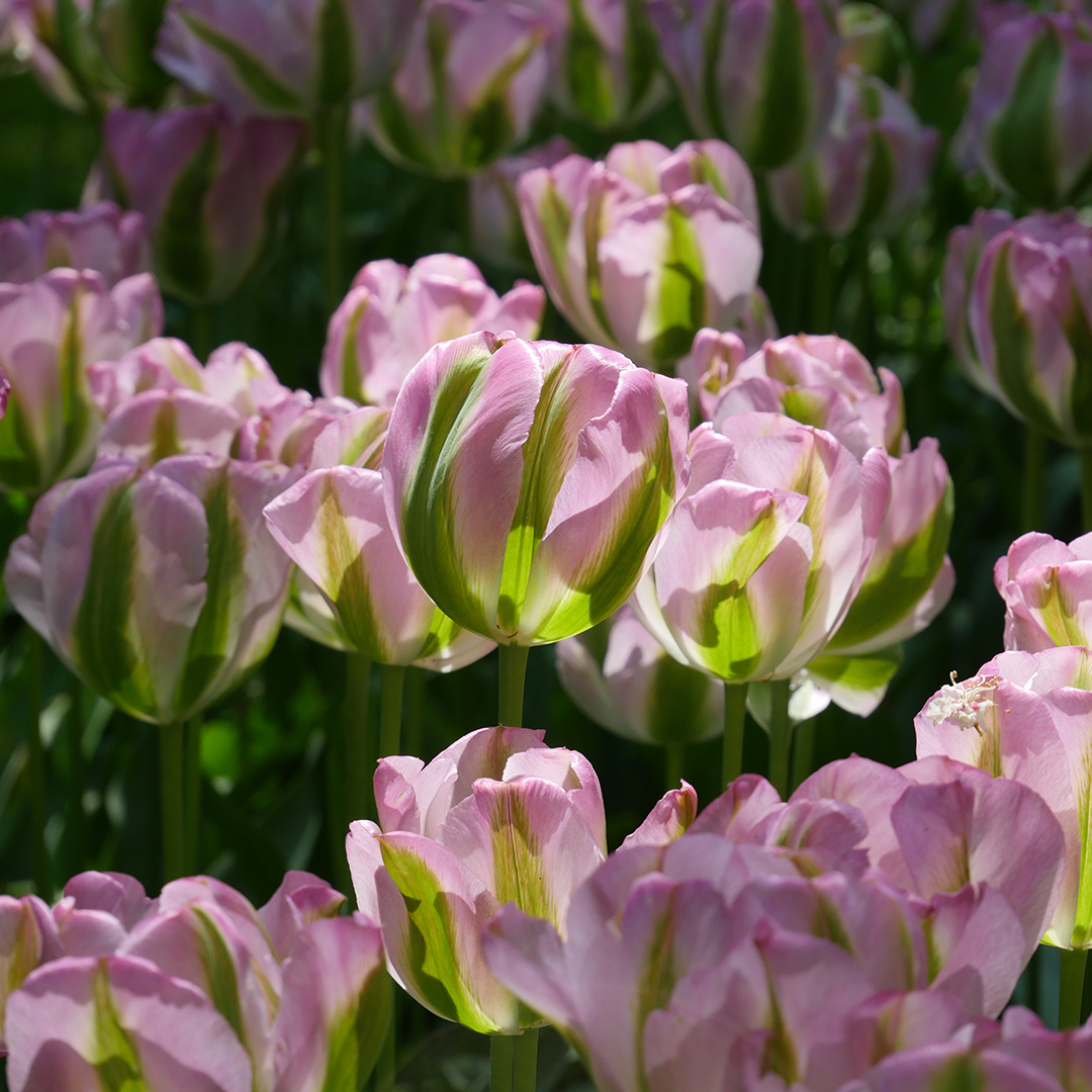Tulip Greenland has elegant flowers that stand out for their simple beauty and subtle colour accents in shades of green and pink. Tulip Greenland adds sophisticated charm to any spring garden. Plant this beautiful tulip Greenland in individual borders or combine them with other varieties of tulips or daffodils. Tulip Greenland are elegant, versatile flowers. These varieties add a touch of vibrant colour to flower beds and borders. This attractive tulip creates a cheerful atmosphere in all types of gardens. It is an attractive plant that can grow more than 50 cm tall when mature. The plant stands firmly on its sturdy stem. The petals are a beautiful pink, as pure as they are delicate. This pink hue is accompanied by a beautiful marbled effect of green. When fully open, the flower measures 7 cm in diameter. This tulip brings volume and colour to the garden from April onwards.