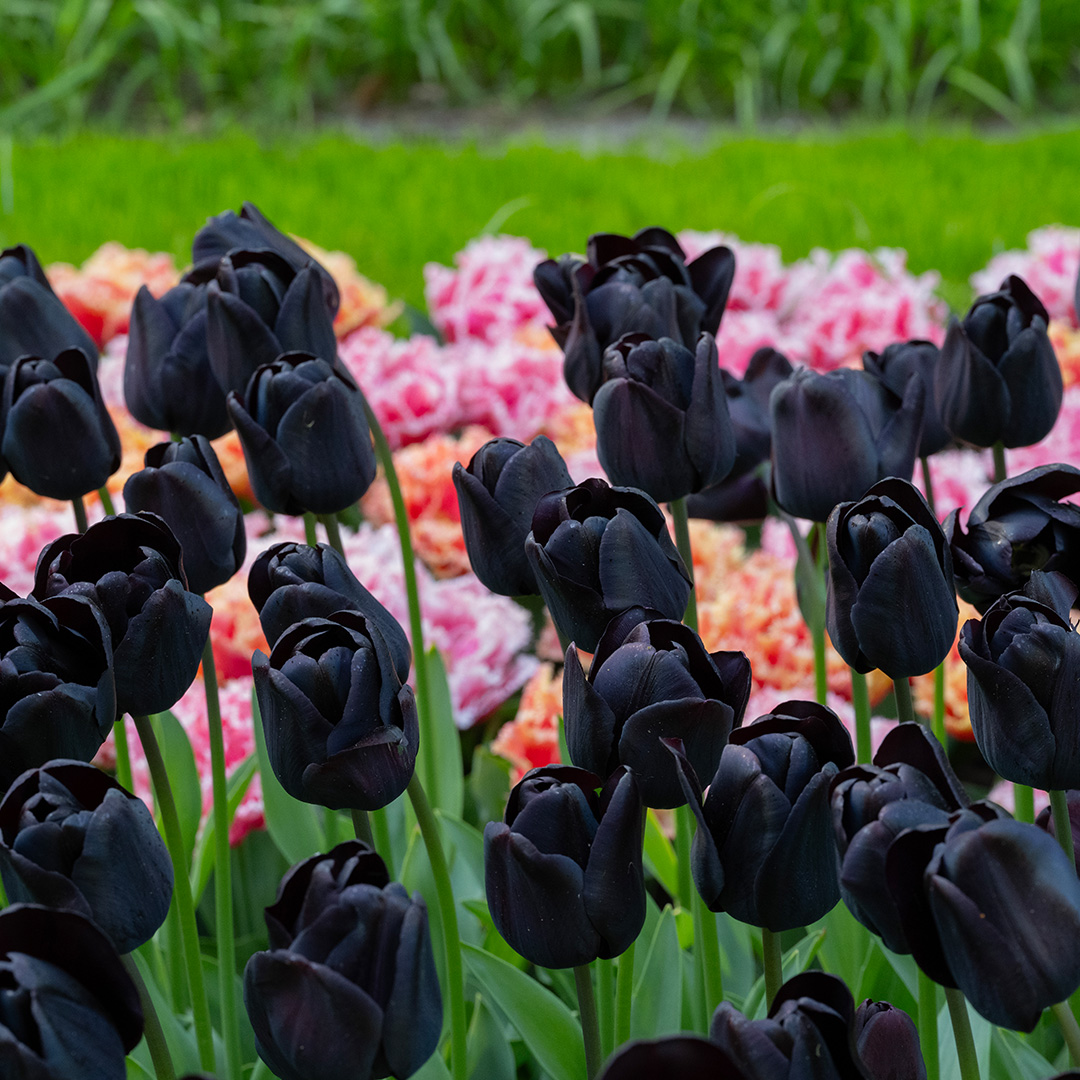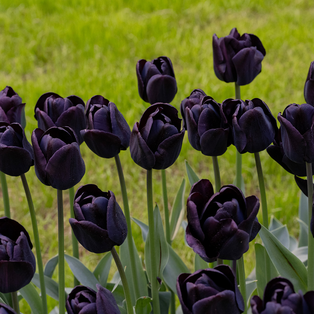 Unique Color: A dramatic addition that contrasts beautifully with light spring bloomers like white daffodils or pale pink tulips.